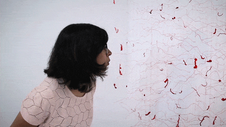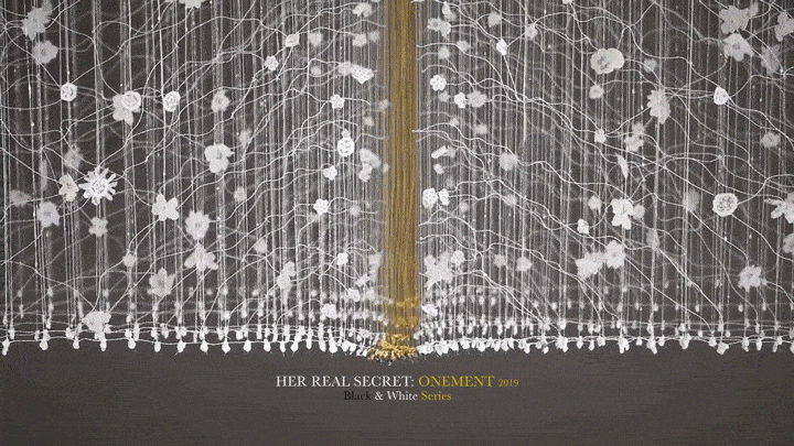 <그녀의 진짜 비밀: 하나 됨> 228 x 215 x 40 cm, 나일론 & 폴리에스터 섬유, 아크릴물감과 18k 금박 2018