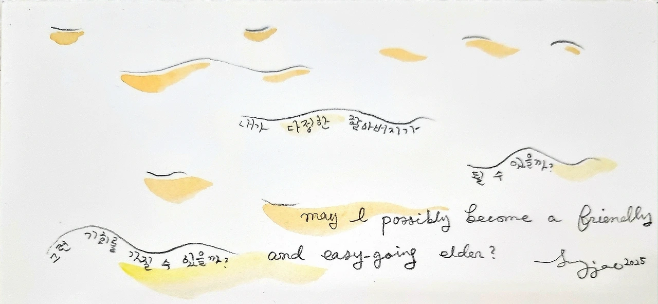 요즘 들어 나의 노년을 다짐하곤 한다. 되도록 말을 아끼고 글을 쓰는 게 좋겠다는 생각을 한다. 고독이 두렵고 적적함에 맘이 쓰려도 깨끗이 차려입고 혼자 도서관에 걸어가 책을 읽고 오고 싶다. 혹시나 청년이 괜히 말을 걸어오거나 조언을 구해오면 "나도 잘 모른다."라고 답하고 그의 의중을 되묻고 싶다. 한창 열심히 활동하는 작가의 전시에 초대를 받으면 꽃 한 송이에 '전시 축하해요'라는 짧은 편지를 끼우고 종이에 5만 원이라도 넣어 건네 줄 수 있는 몸과 마음의 여유가 있으면 참 행복하겠다. 내가 그렇게 될 수 있을까?
