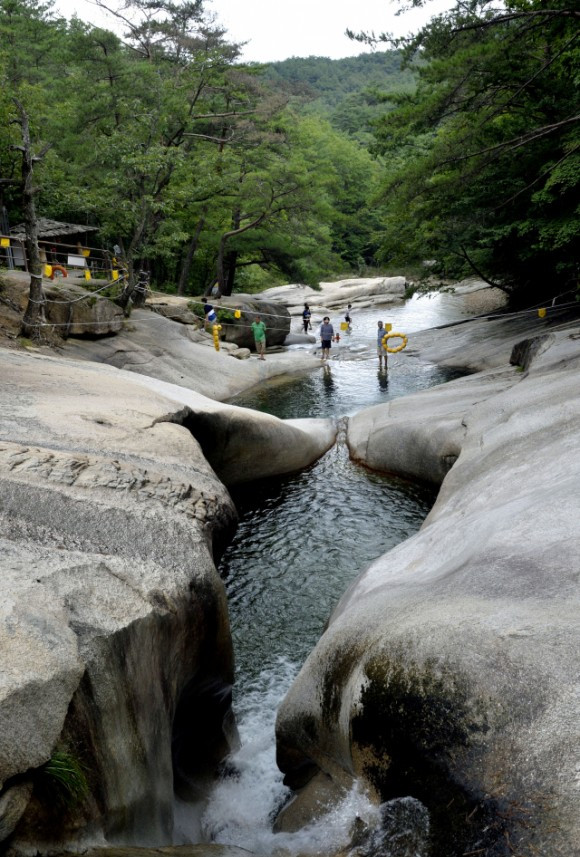 완만한 오르막길이 이어지지만 전혀 힘들지 않다. 귀청을 때리는 청아한 물소리와 솜씨 좋은 석공이 다듬어 놓은 듯 한 계곡미가 마음을 사로잡는다.
