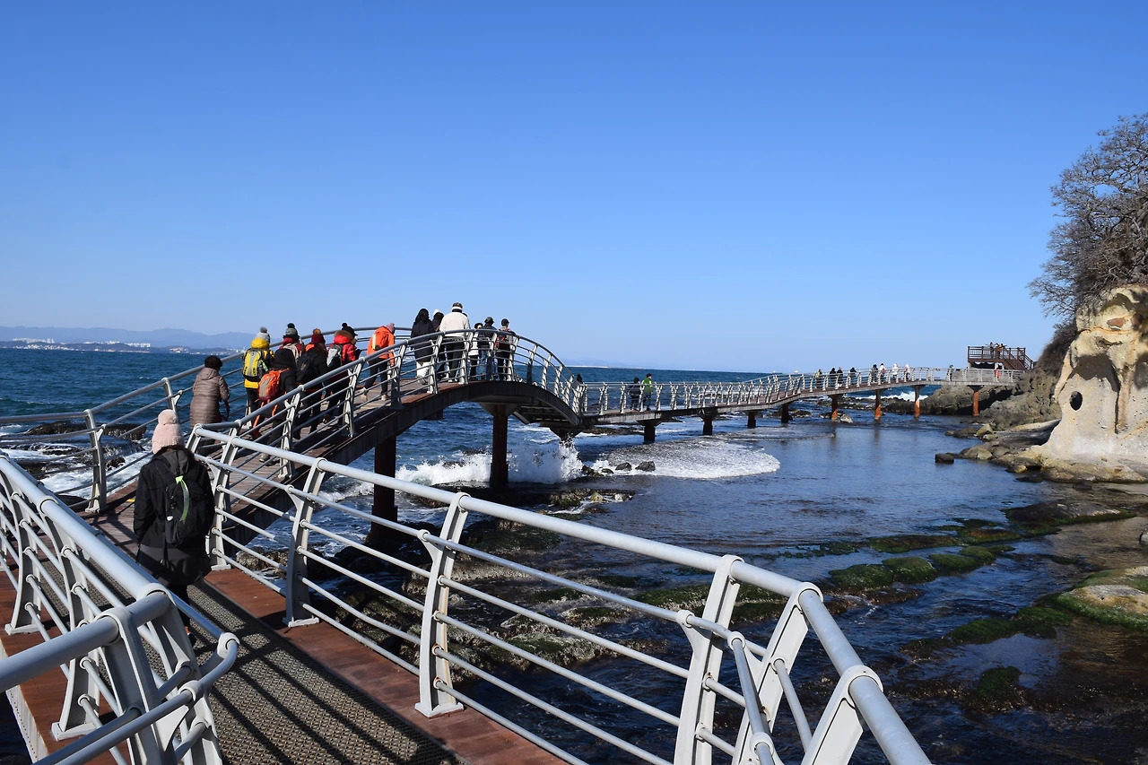 몽돌해변과 포구, 바다데크길이 두루 섞여있는 길은 파노라마 같은 풍경은 익숙한듯 하면서도 새롭다. 이국적인 하얀 바위가 우뚝 솟은 ‘힌디기’와 여왕바위, 모마이 바위를 비롯해 온갖 형상의 바위는 1억5000만 년 전 화산 활동으로 빚어진 절경이다.