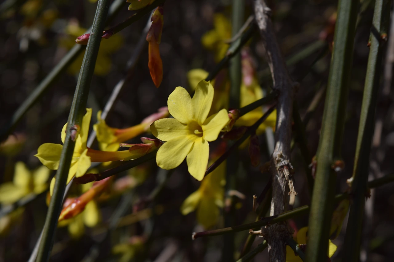 (현천마을 돌담에 활짝 핀 개나리 닮은 '영춘화'