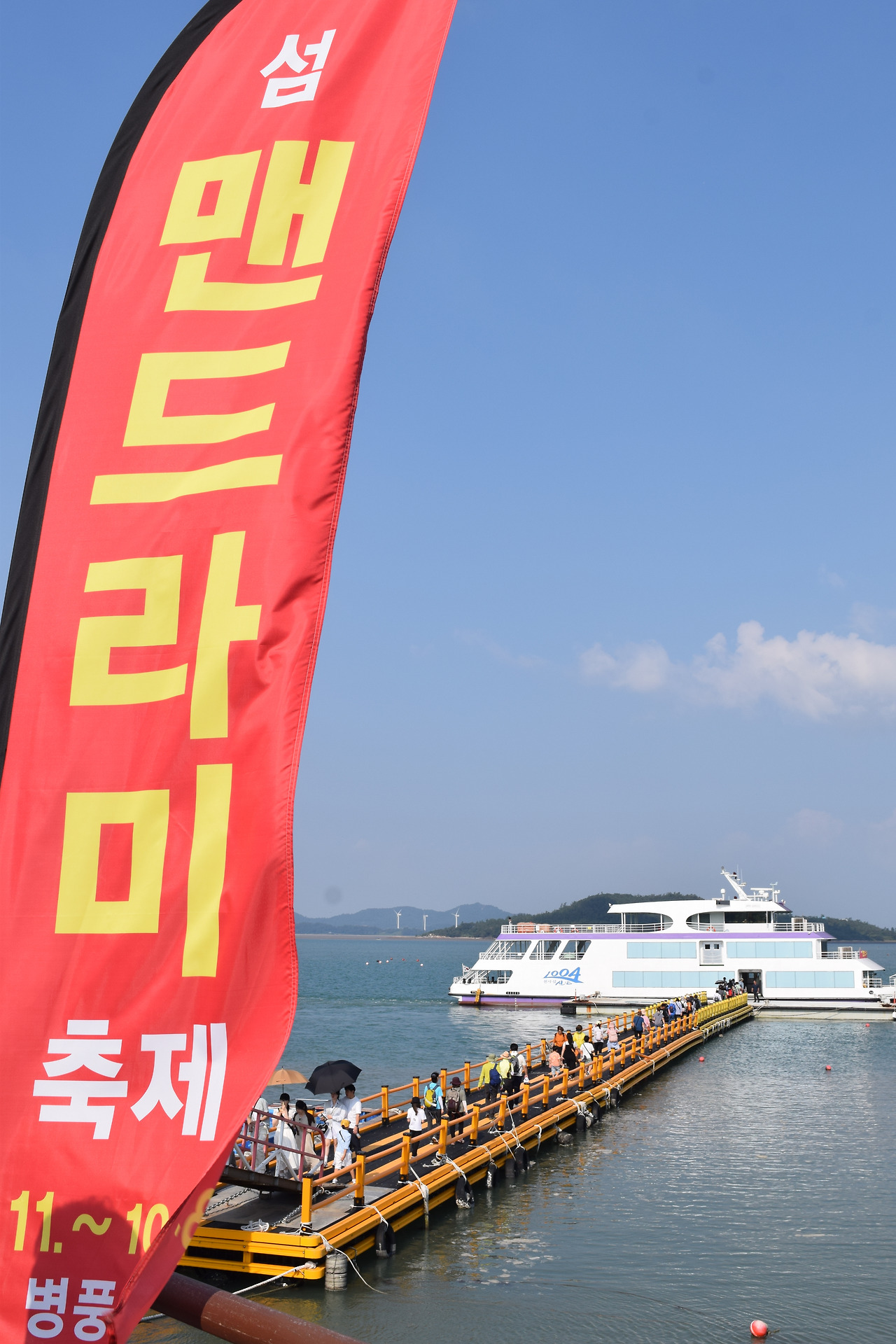 점점이 떠있는 섬과 바다를 바라보며 불과 25분 만에 병풍도 보기선착장에 도착하니 가을 햇볕이 강렬했다. 완연한 가을로 접어드는 9월 하순이지만 하늘은 여전히 여름을 품고 있었다.