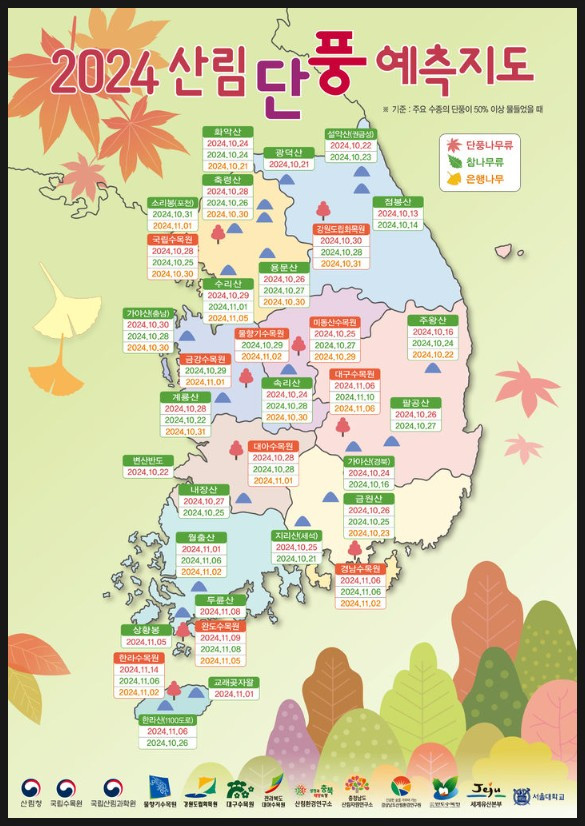문제는 나무에 관한 한 전문가들이 모여 있는 산림청이 단풍예측지도를 발표하면서 전혀 현실과 동떨어진 예측을 한다는 점이다. 단풍 시작은 주요 수종이 50% 이상 물들었을 때를 기준으로 하고 산 전체가 80% 이상이면 절정이라고 한다.