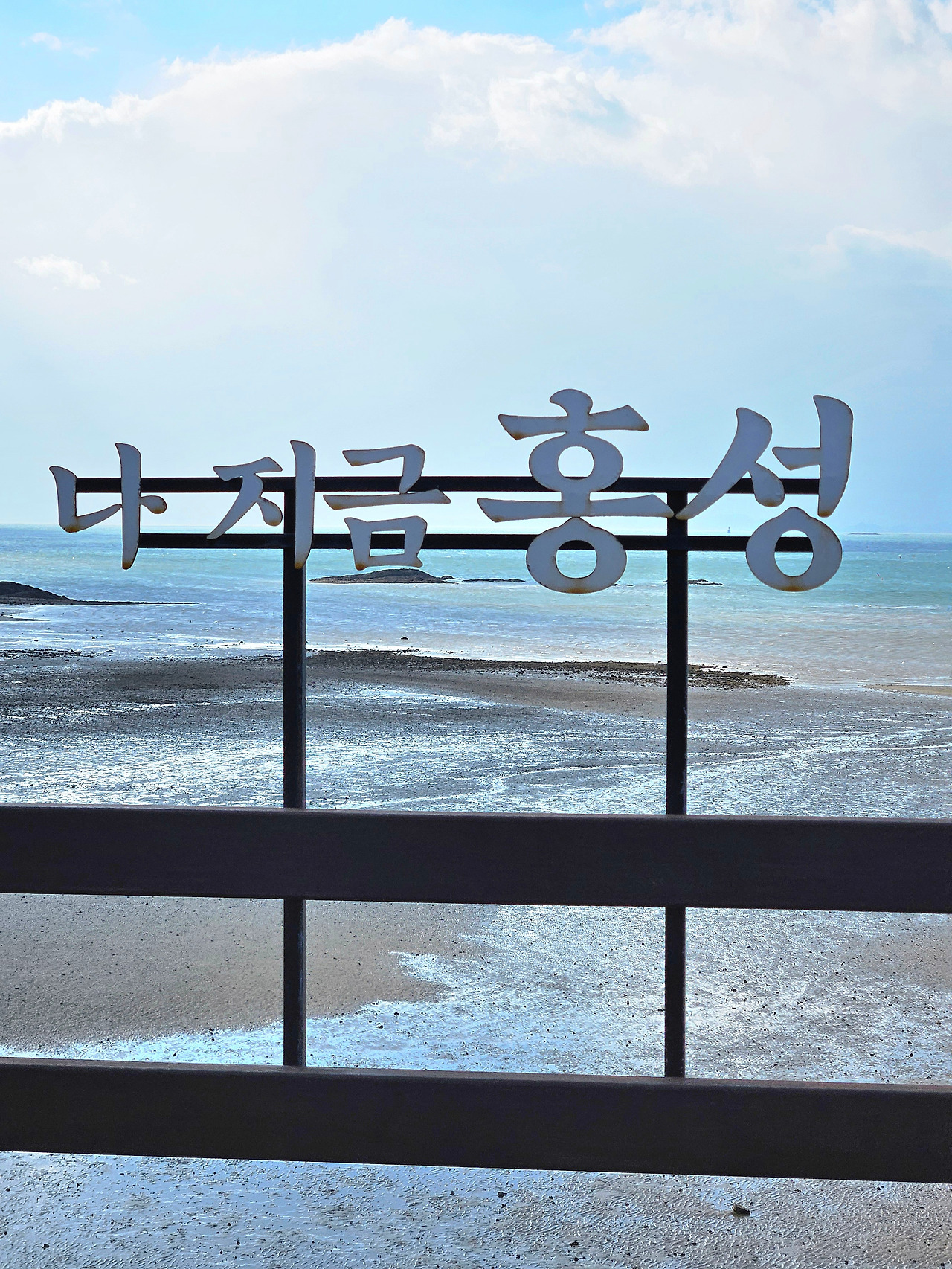 갈 길이 먼 우리 일행은 횟집거리를 외면하고 방파제를 통해 노을전망대로 향했다. 길이 102m인 붉은색 노을전망대는 육지에서 시작해 다리처럼 바다 위로 연결돼 있다. 전망대의 끝에는 “나 지금 홍성, 죽도록 사랑해”라는 문구를 담은 조형물을 설치해놨다. 생뚱맞긴 하지만 모든 탐방객들이 조형물 앞에서 인증샷을 찍으니 홍보효과는 만점일 테다.