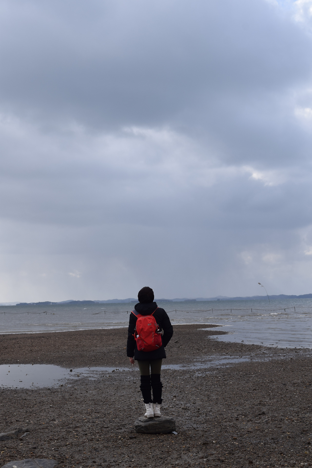 어사항에서 바다로 돌출된 궁리항쪽을 바라보니 우리의 목적지인 속동해안공원의 하얀색 홍성스카이타워가 보인다. 지난 5월에 오픈한 스카이타워는 65m 높이다 보니 멀리서도 가까워 보이지만 어사항에서도 30분 이상 걸어가야 한다. 바람은 잦아졌지만 대신 눈이 내릴 채비를 하는 듯 먹구름이 서서히 몰려왔다.