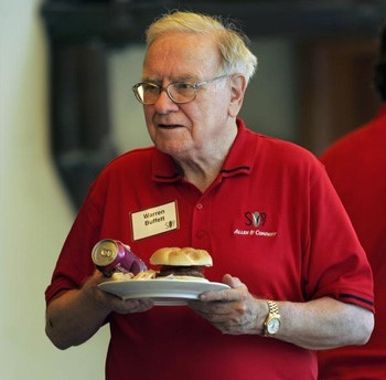 버핏은 아침식사로 맥도널드에서 소시지 패티 2개, 계란, 치즈 또는 베이컨으로 구성된 3.17달러(약 4200원) 짜리를 먹고 매일 12온스(355㎖) 분량의 코카콜라를 5개씩 마신다. 점심엔 칠리 치즈 핫도그와 견과류를 곁들인 아이스크림을 먹고, 간식으로는 사탕을 자주 먹는다.