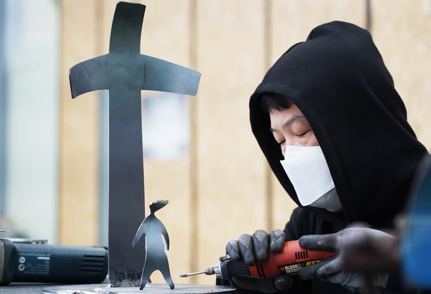 “고학을 하면서 신학대학원을 5년만에 마친뒤 전도사 시절인 2004년 고향인 천안에 개척교회인 오병이어교회를 세웠다. 이후 신앙생활에 매진하다가 교회가 어느정도 기반을 닦은 40대 초반에 재능을 살려 많은 사람들에게 희망과 위로의 메시지를 전할 수 있는 철을 소재로한 다양한 조각작품을 만들기 시작했다”