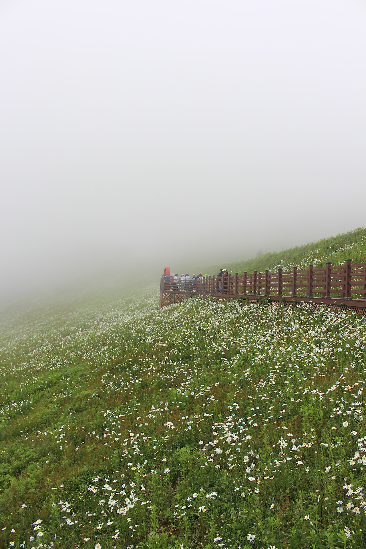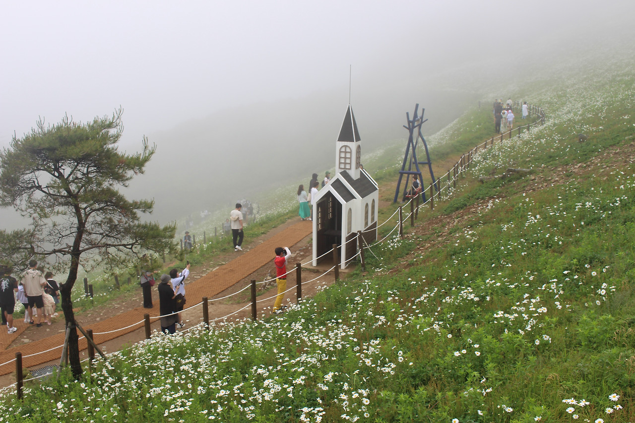 사실 샤스타데이지 군락이 특별한 감흥을 준 것은 아니다. 전국 각지의 풍경 맛집을 찾아다니다보면 더 매혹적인 곳도 많다. 내가 정말 감사한 것은 날씨다. 평소처럼 맑게 개었다면 그래서 뜨겁고 강렬한 햇볕이 육백마지기에 쏟아졌다면 더위에 지쳐 이날의 감동은 반감됐을 터다.