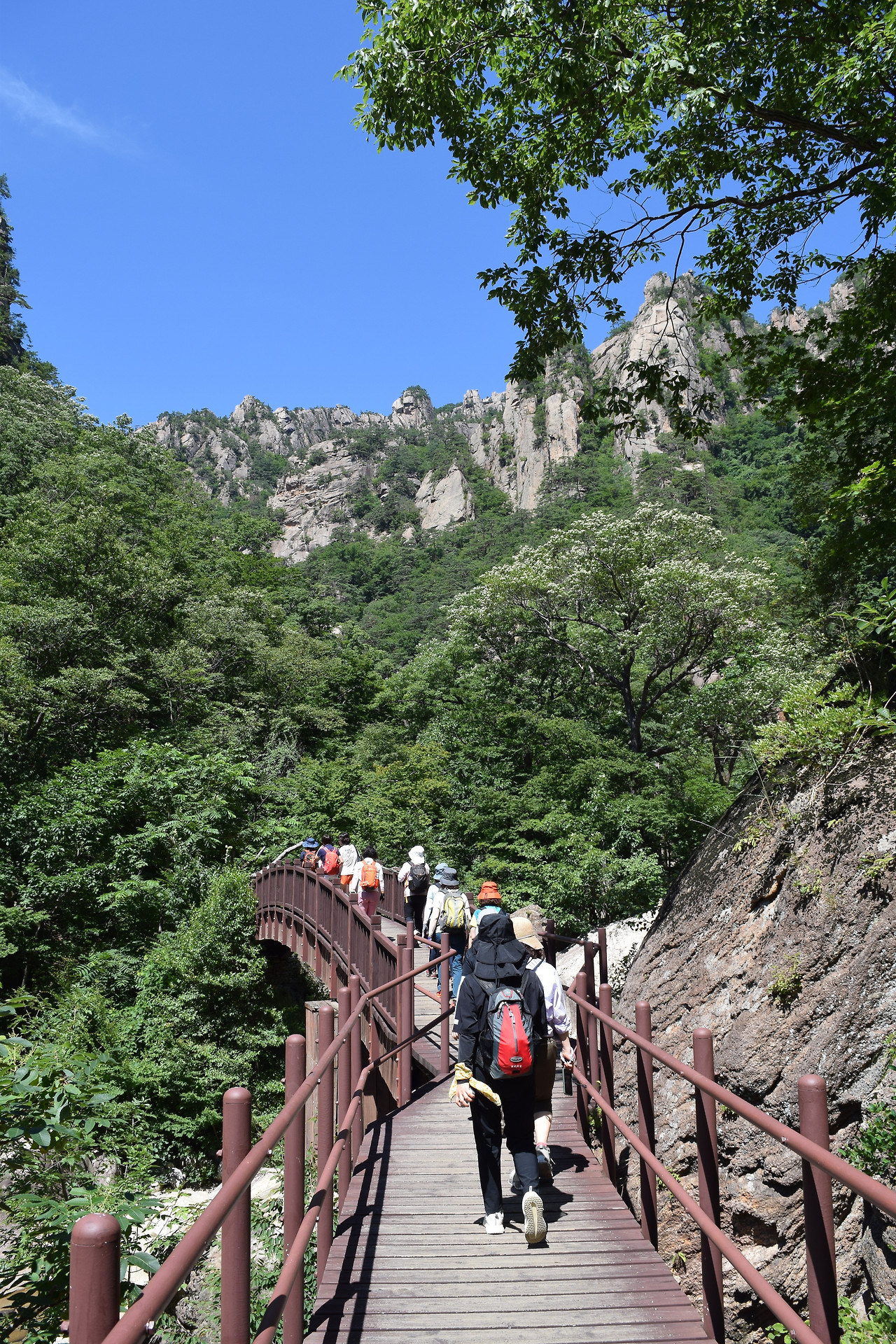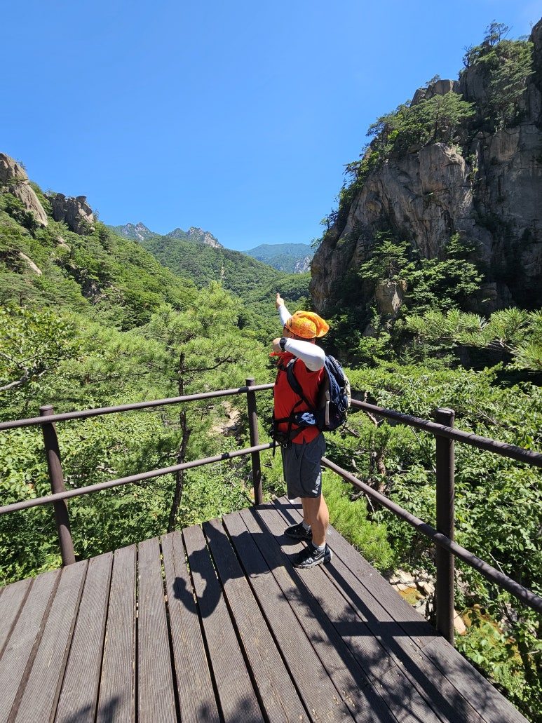 초여름부터 주말 트레킹 때마다 기상청의 오보로 ‘장맛비’ 고비를 몇번이나 무사히 넘겼는 데 이날은 ‘폭염’이라는 허들을 가볍게 통과했다. 역시 폭염도 설악산에선 맥을 못춘다.