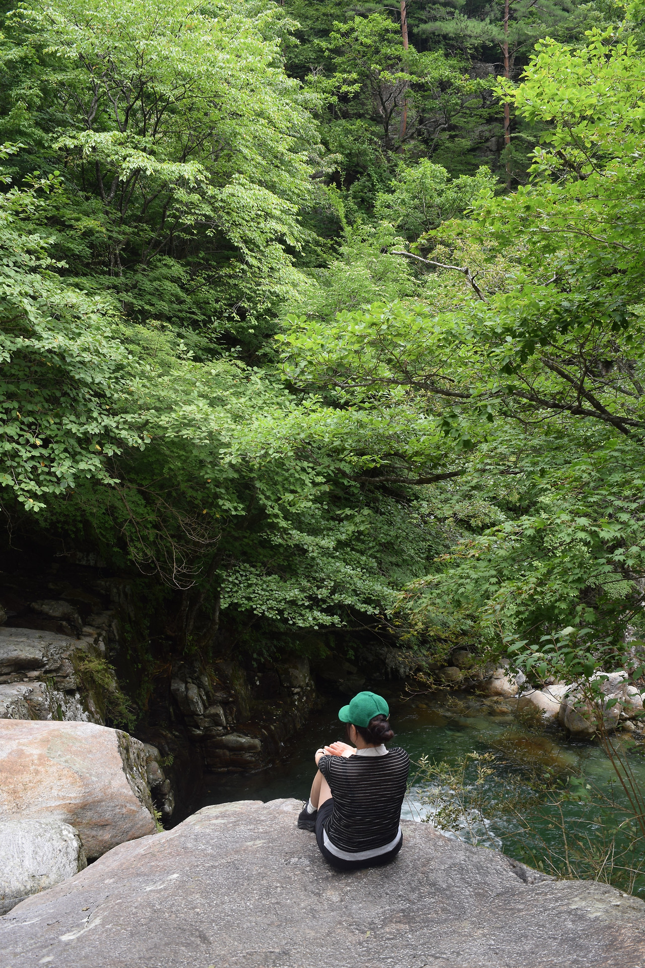 폭포수를 받아내는 용소는 얼마나 깊은지 검푸른 빚으로 일렁여 금방 용이라도 솟아오를 듯 경외감을 느끼게 한다. 계곡 수영을 즐기는 지인에게 뛰어들 자신이 있느냐고 짓궂게 물었더니 고개를 설레설레 흔든다. 주민들은 가뭄이 지속되면 가내소폭포에서 기우제를 지냈다고 한다.