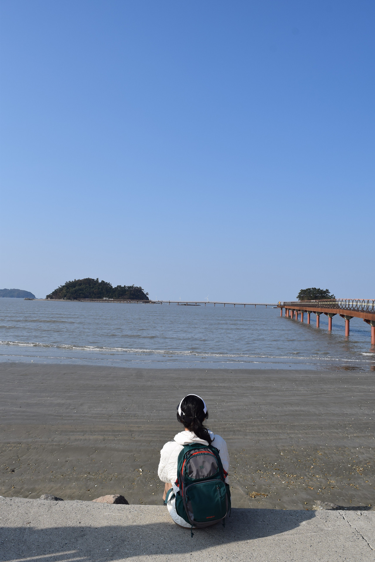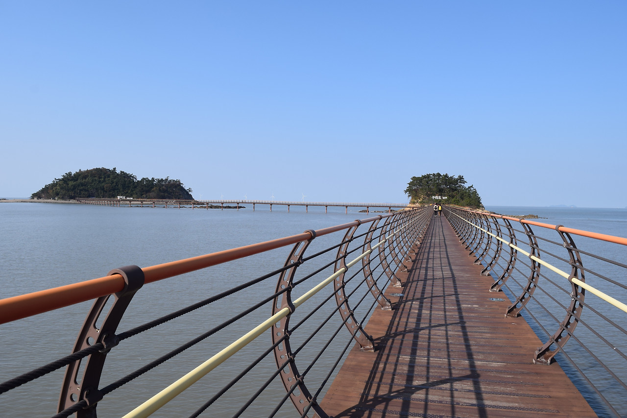 그 다리를 걸을땐 마치 바다위를 걷는듯 했는데 그 다리에서 보는 주변 풍경이 장관입니다. 강렬하게 쏟아지는 햇살에 갯벌과 바다가 동시에 윤슬로 반짝이는 장면은 오래도록 잊혀지지 않을 겁니다. 새벽에 기상해 285km의 먼길을 찾아간 노고가 씻은 듯이 사라졌습니다.