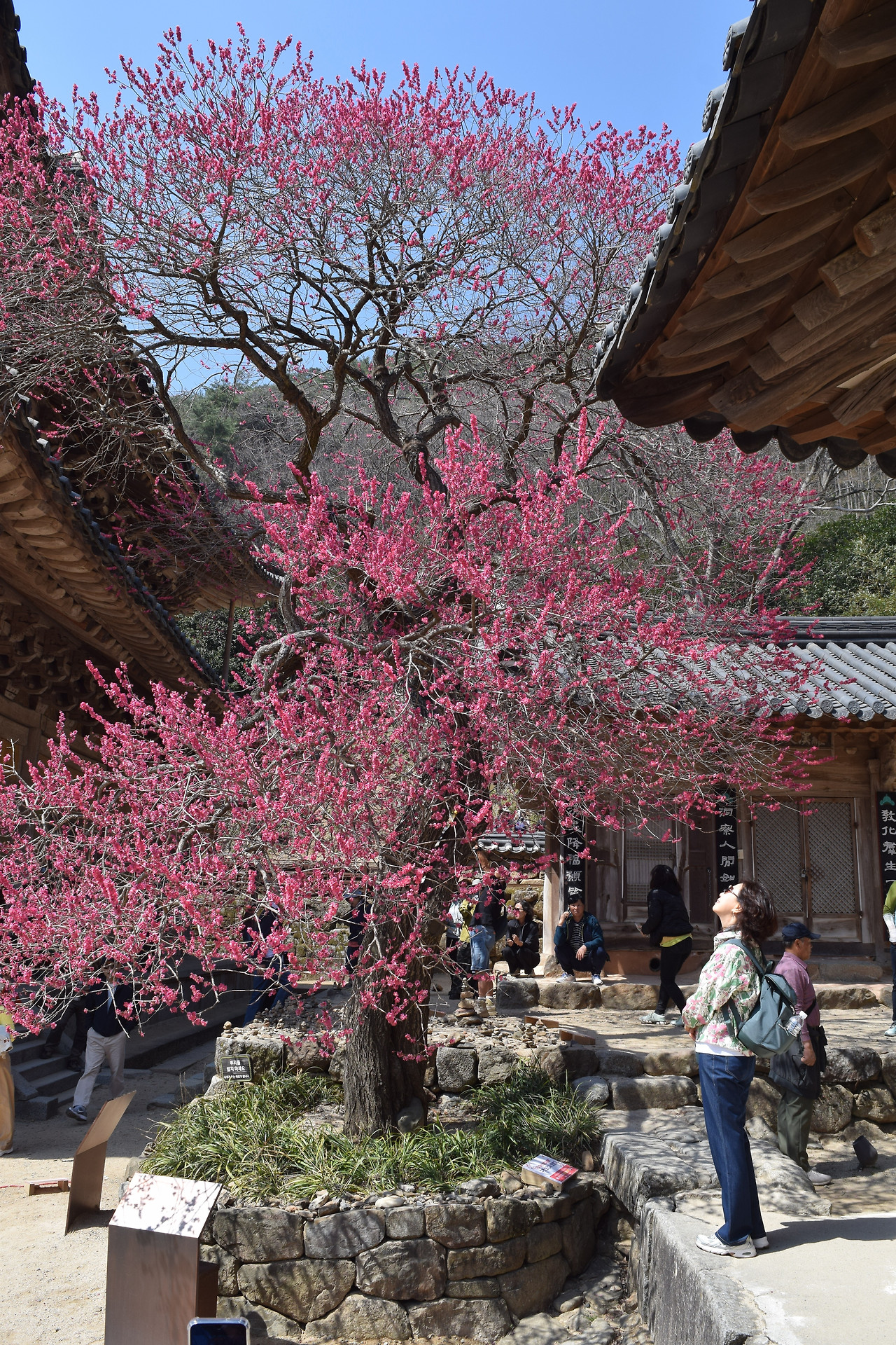 '화엄매'는 단박에 시선을 끈다. 사찰 처마를 배경으로 휘감아도는 줄기와 유연한 가지에 달린 선홍빛 꽃잎은 눈이 시리도록 파란 하늘과 조화를 이뤄 처연할 만큼 아름답다. 그래서 높이 9m의 홍매(紅梅)는 지리산의 봄을 상징하는 ‘나무의 여왕’이라고 해도 과언이 아니다. 아마도 화엄사를 찾은 상춘객들은 매년 이맘때쯤이면 화엄매 앓이를 할지도 모르겠다.