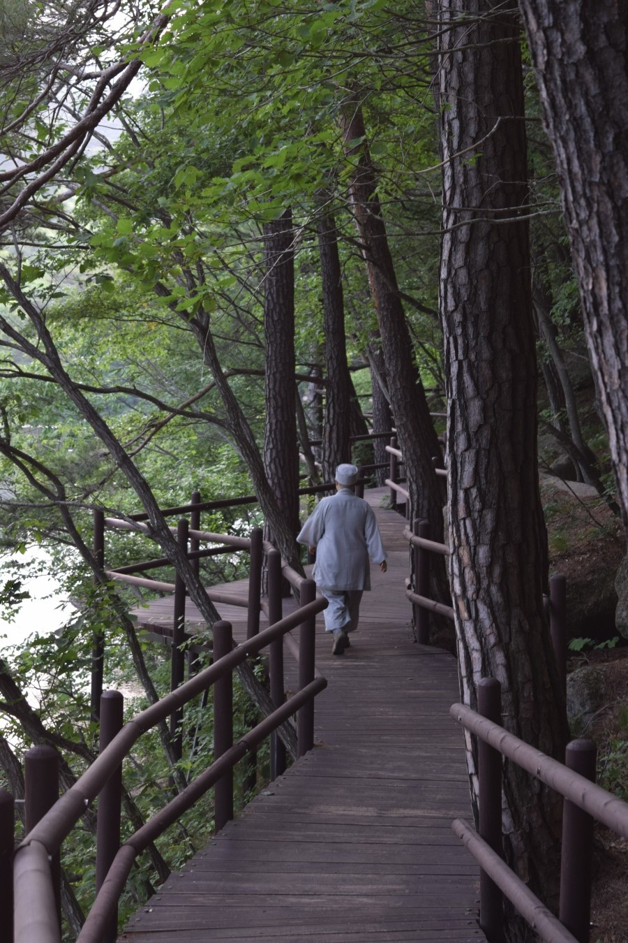 <세조길 데크로드를 걷고 있는 법주사 스님>