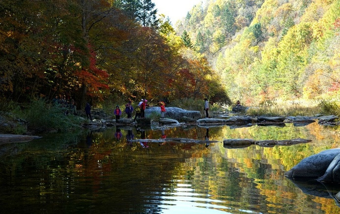 특히 능선과 능선을 잇는 높이 50m의 구름다리 위에서 바라보는 단풍 숲의 전경은 두고두고 잊혀지지 않을 만큼 진한 감동을 선사한다. 또 계곡을 끼고 수 km에 달하는 메타스퀘이아 나무도 일품이다.