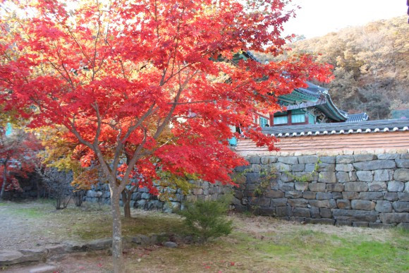 마치 붉은 조명등처럼 안국사 경내를 화사하게 밝혀주는 단풍나무.