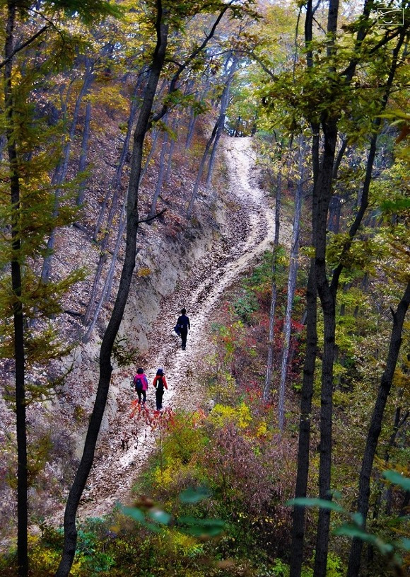 다만 오르막길과 내리막길이 있어 적당히 힘들고 고즈넉한 오솔길이 있어 지루하진 않다. 무엇보다 늦가을 소슬바람에 단풍잎이 마치 소나기처럼 쏟아지는 광경을 보기는 흔치 않다. 고갯길에서 낙엽이 흩날리며 머리 위로 떨어질 땐 늦가을의 정취에 마음이 심쿵한다.