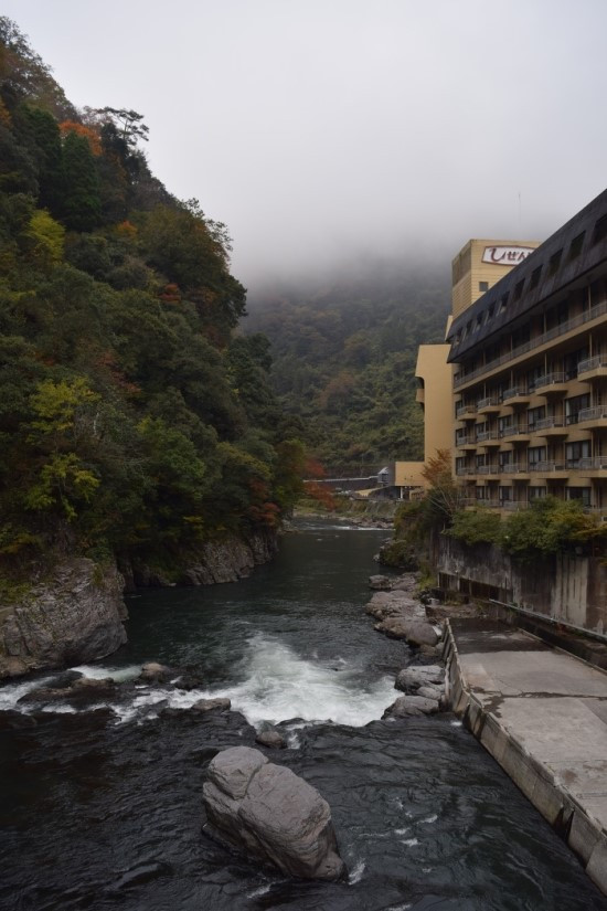 계곡으로 이어지는 하천은 여전히 아름답고 깨끗하다. 안개를 뚫고 붉거나 노란 잎새를 뽑내는 단풍나무도 눈길을 끈다. 그 옛날 개발하지 않고 전통 온천마을로 남아있었다면 어땠을까.