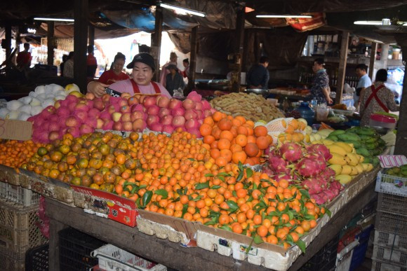 비엔티안 부근 재래시장 과일가게