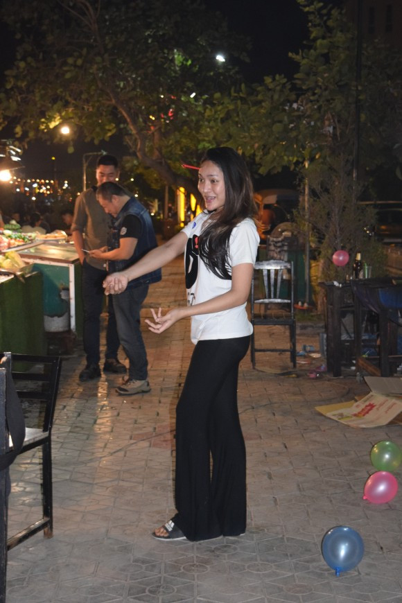 메콩강 노천식당에서 춤추는 라오스인 처녀
