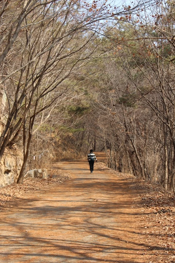 계곡을 내려다보며 걷는 산길은 워낙 부드럽고 차분해 걷는 이들이 의외로 많았다. 화양동자연학습원에서 유턴해 돌아가는 길은 살짝 내리막길이다. 왕복으로 걷는 길이지만 방향이 다르니 느낌도 다르다. 울창한 소나무 숲 사이에 햇볕이 쏟아지고 매끈한 반석 위엔 새들이 옹기종기 앉아 해바라기를 하고 있었다. 우암이 걸은 길은 다를지라도 풍경은 변하지 않았을 것이다.