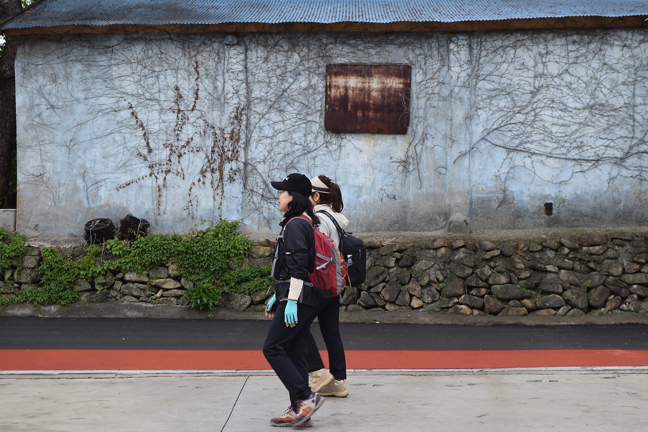 아침 일찍 청주를 출발할 때만 해도 하늘은 화창했다. 하지만 고성에 접어들자마자 먹구름이 몰려들더니 마치 우리 일행을 환영하는 듯 이슬비가 부슬부슬 내렸다. 빗속에 장거리를 걷는 것은 번거로운 일이다. 우비를 입거나 우산을 써야 한다.