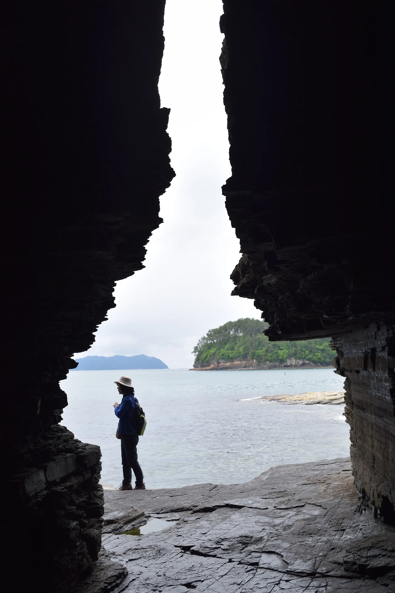 바다와 암반이 평형을 이룬 굴속에서 멀리 섬들이 점점이 떠있는 바다를 보면 영화 '쥐라기 파크'의 한 장면처럼 공룡이 등장할 것 같다. 굴 밖에 평탄하게 있는 암반층엔 공룡발자국이 선명하게 찍혀 있다.