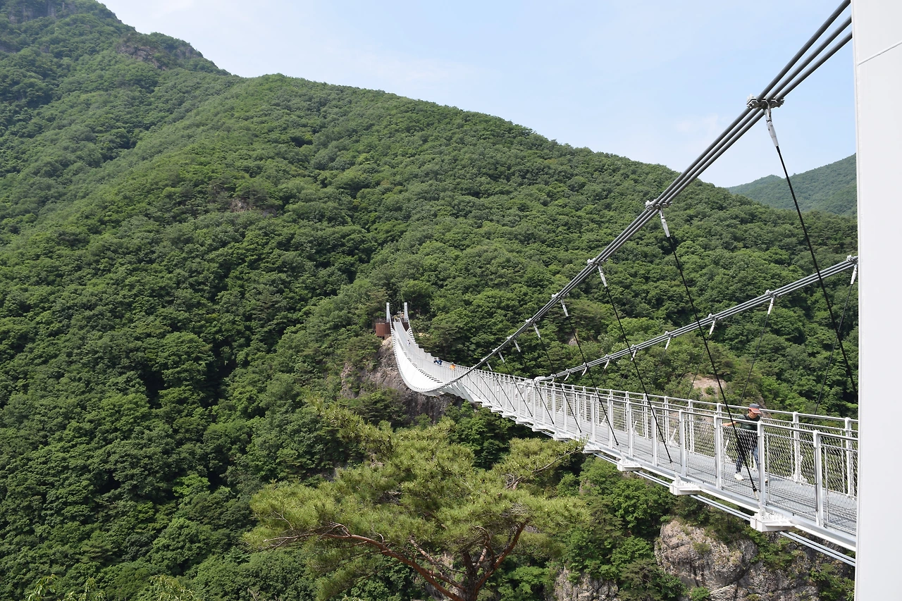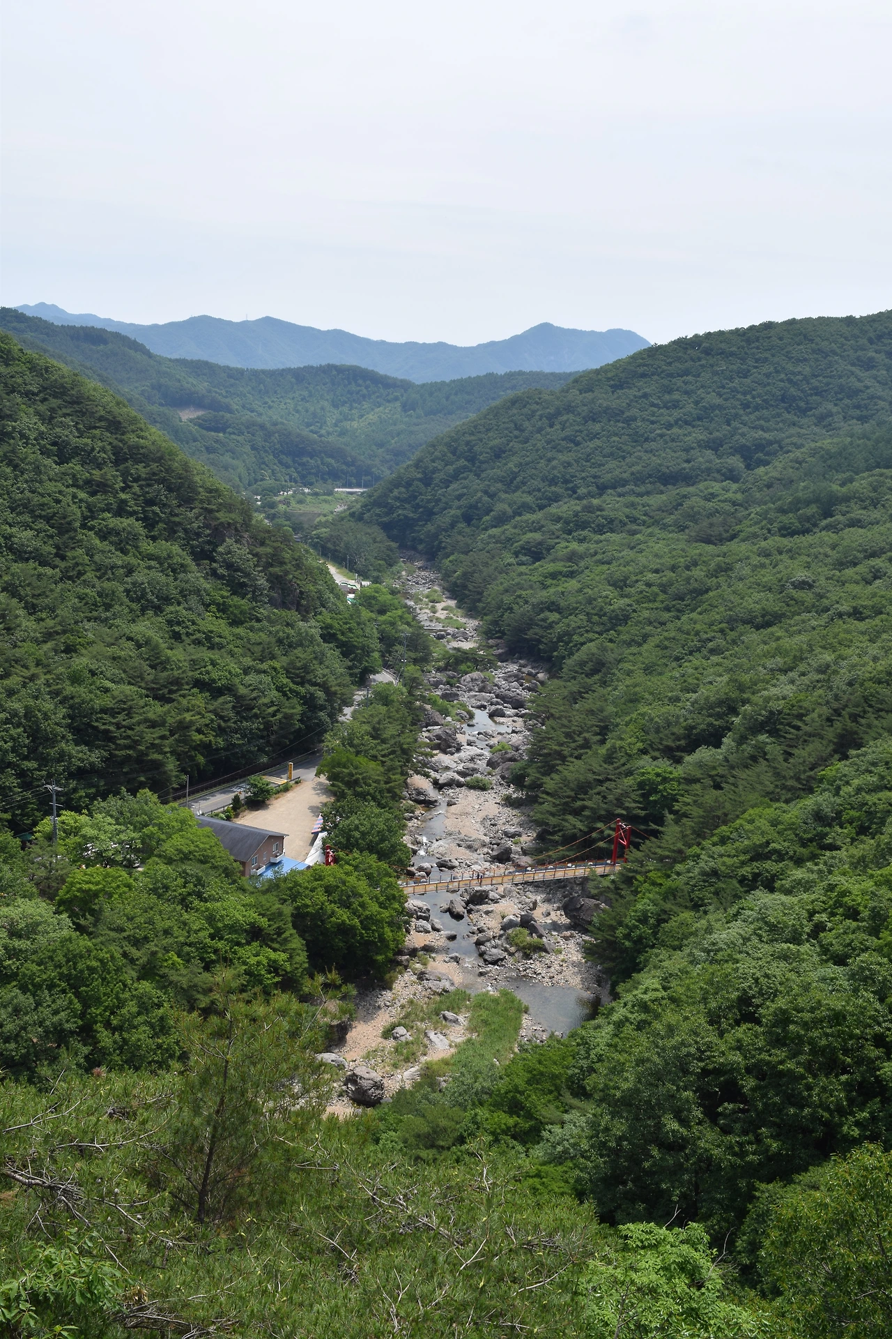 이 다리 입구를 담당하고 있는 60대 안전관리원은 감탄사를 쏟아내고 있는 우리 일행에게 “골짜기가 불이 붙은듯 단풍이 화려한 가을에 오면 더 멋있다”고 했지만 다리밑에 펼쳐진 협곡의 초여름 녹음도 산뜻하다.