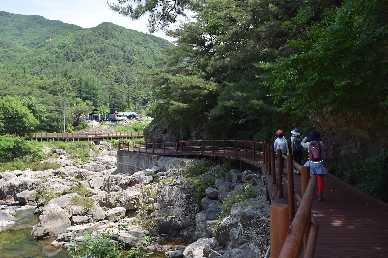 이 길은 2년전만해도 크고 작은 기암괴석과 용소를 품은 계곡숲길이었다. 고려시대 송나라 주자의 종손인 주찬이 협곡의 비경을 소문으로 듣고 다녔갔다는 설 때문에 ‘주자천’으로 불리는 계곡을 따라 이어진 그늘 짙은 테크길은 숲에서 불어오는 바람때문에 무척 시원하지만 비경(祕境)이라고 할 수는 없다.