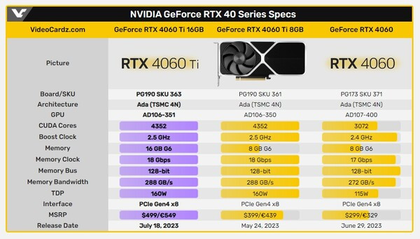 18일, 엔비디아는 8GB를 탑재하고 출시했던 RTX 4060 Ti의 메모리 업그레이드 버전인 RTX 4060 Ti 16GB 모델을 공식 출시했다.