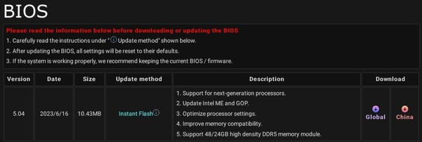 이 업데이트는 차세대 프로세서를 지원하는 것 외에도 메모리 호환성을 개선하여 24GB/48GB 고밀도 DDR5 메모리 모듈을 추가로 지원하며, 프로세서 설정을 최적화하는 등의 기능을 제공한다.