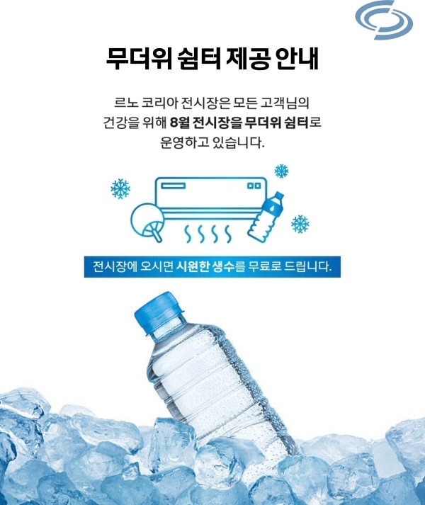 르노코리아는 전국의 영업 전시장을 여름철 시원한 휴식처로 제공하고 있으며, 모든 방문 고객에게 청량한 생수를 무료로 제공한다.