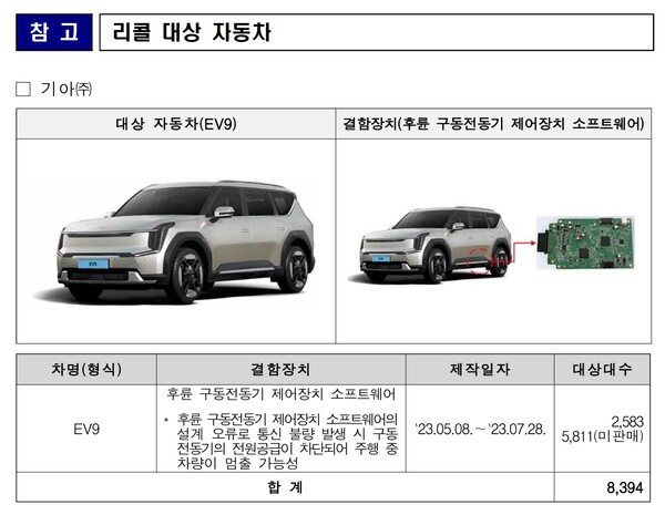 해당 문제는 소프트웨어 업데이트를 통해 해결 가능한 문제이며, EV9의 리콜 작업은 10일부터 시작될 예정이다.