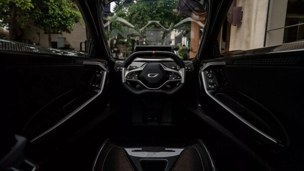 실내는 마치 항공기 안에 있는 듯한 느낌을 주며, 중앙에 위치한 운전석과 뒤에 앉는 탠덤 시트 구조, 알칸타라 소재 사용 등이 독특한 특징이다.