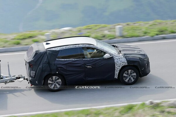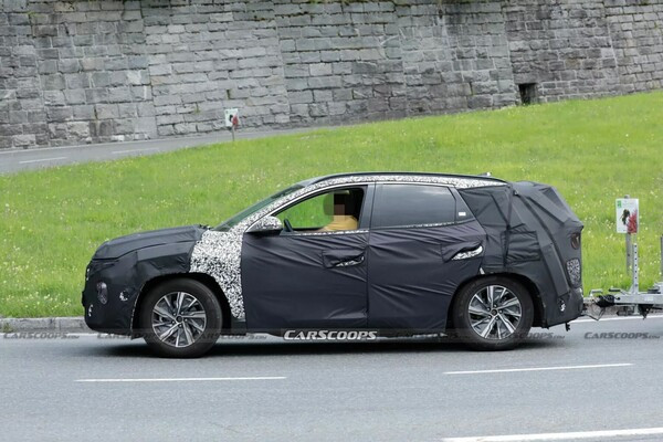 투싼 페이스리프트 모델은 알프스에서의 테스트 중 포착되었으며, 대부분이 위장막으로 가려져 있는 모습이었다.
