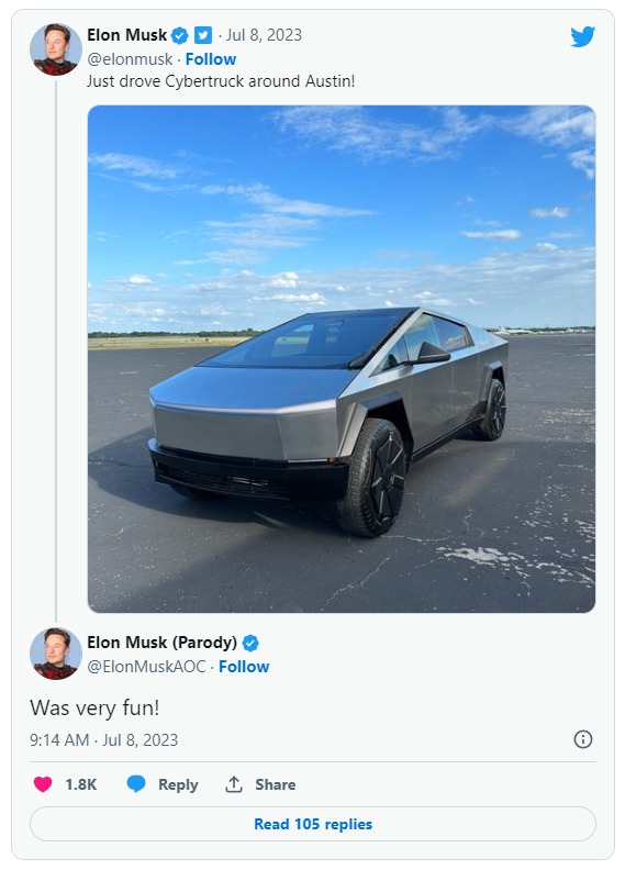 그러나 소셜 미디어에 올라온 다른 게시물에 따르면, 일론 머스크가 토요일에 실제로 오스틴 주변을 사이버트럭으로 달렸다는 정보가 확인되었다.