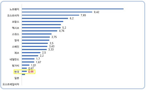 OECD 주요 회원국 30세 이하 국회의원 비율
