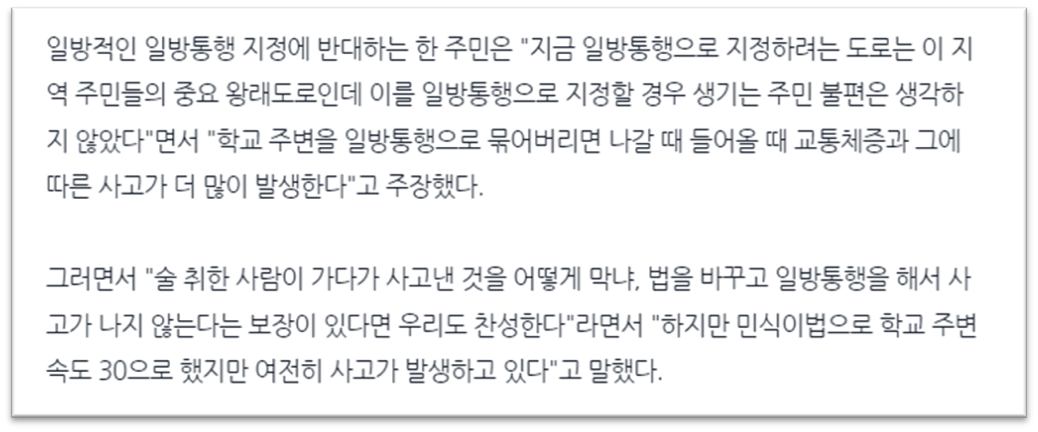 안전한 '동원로'를 만드는 게 쉽지는 않았다고 합니다. 해당 도로의 폭이 좁아 보도를 따로 만들게 되면 일방통행로로 바꿔야 했거든요. 먹자골목으로 이어지는 길이고 평소 통행량도 많아 주민들의 불편이 예상된다는 반대 목소리가 나왔어요. 강남구청 측은 "학교와 경찰, 전문가의 의견을 반영해 결정한 사항이고, 차량소통을 원활하게 하기 위해서 일방통행을 하는 것이 아니라 보행자 안전을 위해서 일방통행을 하는 것"이라며 청담동 주민들을 설득했어요.