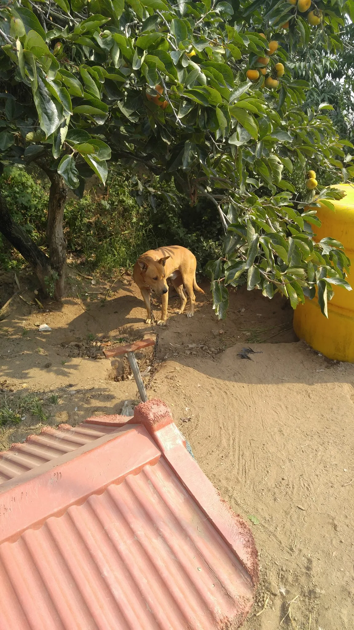 부하들은 개장에 갇혀있지만 집 앞에 저렇게 매 있어서 애완견처럼 꼬리 흔들며 반기지는 않지만 그래도 얼굴 보며 아는 척은 했는데.......