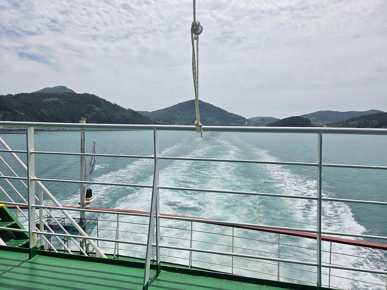청산도에서 완도항으로 나가는 배 선착장, 앞에 있는 1톤 트럭 창이 내려지고 빠져나오는 왼손에 담배가 들려 있다. 오늘은 해무가 걷혔는데 앞 차에서는 엷은 안개가 쉼없이 새어 나온다.