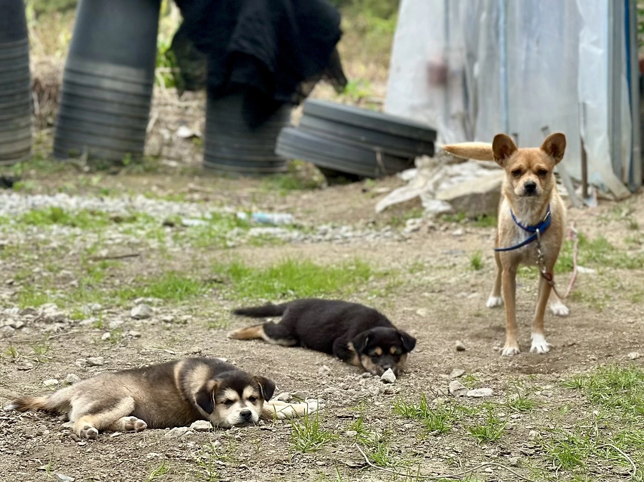 허약하고 못난이라, 그대로 남게 된 검둥이 구찌 녀석만이 빈 마당에 덩그러니 있다. 같이 놀던 형제들은 다 어디 가고. 시골개의 심심하고 적막한 삶이 어린 구찌에게 너무나 빨리 찾아왔다.