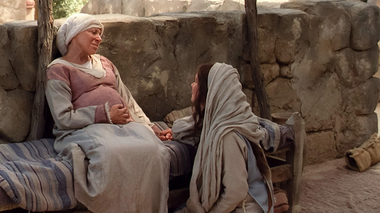 뜻 모를 임신에 두려움과 번민에 휩싸인 마리아는 사촌인 엘리사벳을 만나 위로받고, 임신한 두 여인 간의 공감과 유대, 배려가 느껴지는 따뜻한 순간을 담담한 어조로 성경은 기술한다. 엘리사벳은 마리아를 만나 이렇게 말한다.