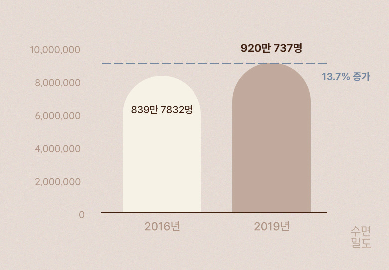 건강보험심사평가원에 따르면 2019년 척추 질환 환자 수는 920만 737명으로 2016년 839만 7832명 대비 3년간 13.7% 증가했으며 경추 질환 환자까지 포함하면 환자 수는 1157만여 명으로 늘어났습니다.