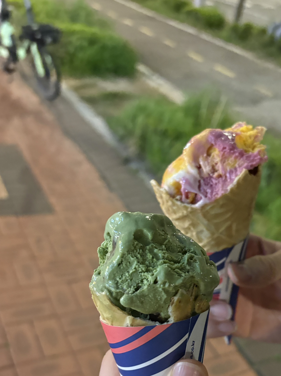 또 다른 날. 마라탕을 먹고 나서 친구가 베라 쿠폰이 있대서 와플콘에 팥있는 말차당 맛 아이스크림을 올렸다. 팥과 말차 모두 내가 정말 좋아하는 거라 맛있게 먹었다. 많이 달긴 했지만…친구는 레인보우샤베트를 더블로 먹었다. 더블로 먹으면서도 싱글로 먹는 나랑 같은 속도로 아이스크림을 다 먹어서 신기했다. 내가 느린 건지, 친구가 빠른 건지 모르겠다.