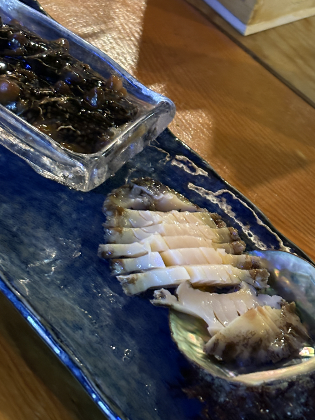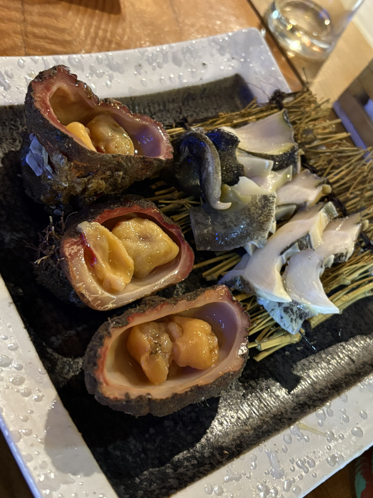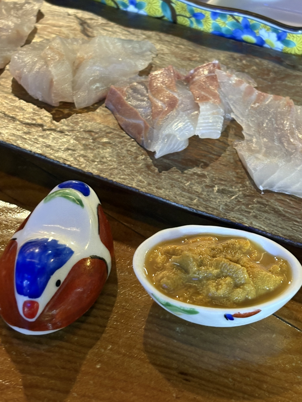 성게알에 자연산 돌돔을 곁들여 먹고.