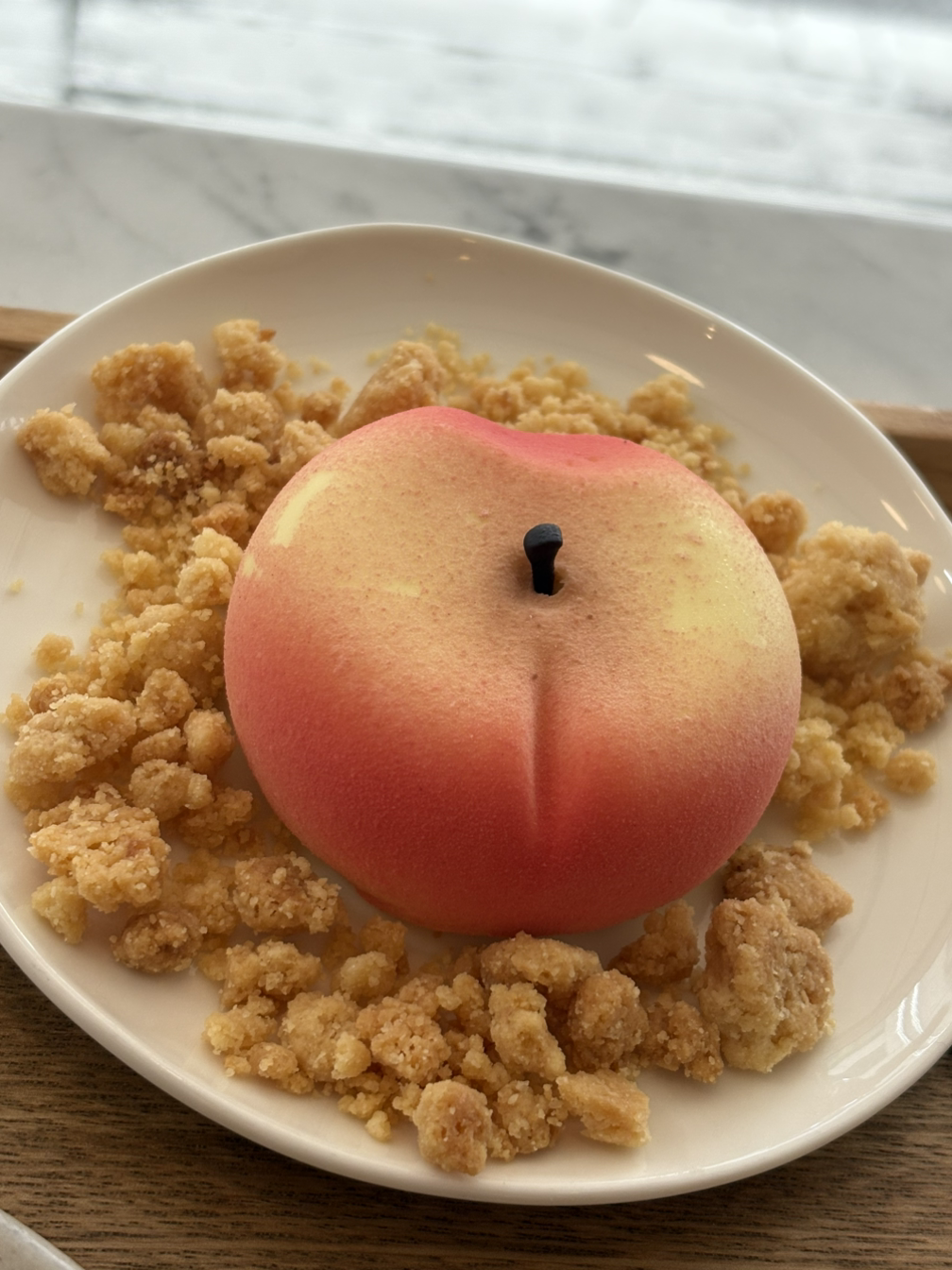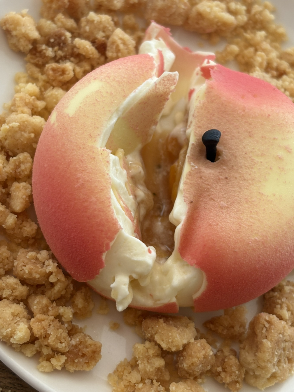 다른 하나는 ‘납작복숭아’. 안쪽에 황도, 신비 복숭아 느낌의 과육이 있었다. 민트, 요거트향도 났고 초콜릿으로 코팅된 느낌이었다. 막걸리도 들어간다고 한다!