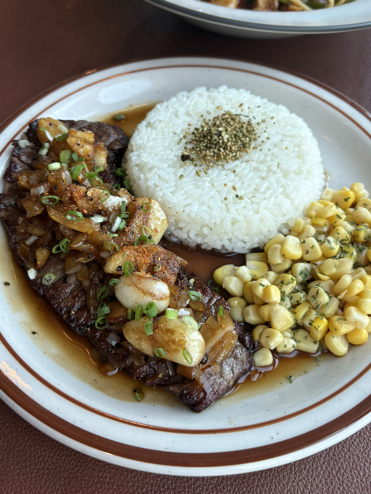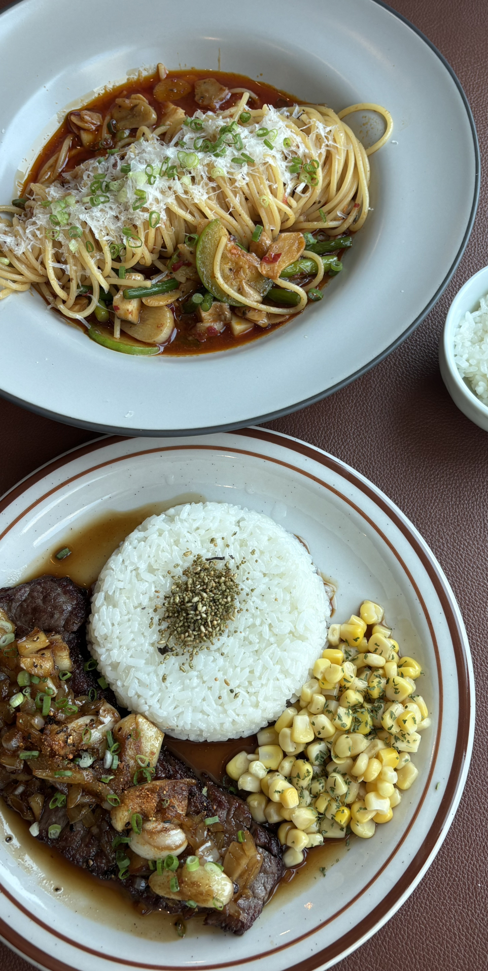 추성훈 스테이크로 알려진 채끝 갈릭 소이 스테이크와 갈치 속젓 오일 파스타를 주문. 밥에 야무지게 스테이크 간장 소스 비벼 먹었는데 짭짤 달콤한 여름 바다와 어울리는 맛이었습니다. 한우 고기도 부드럽고 맛있었습니다.