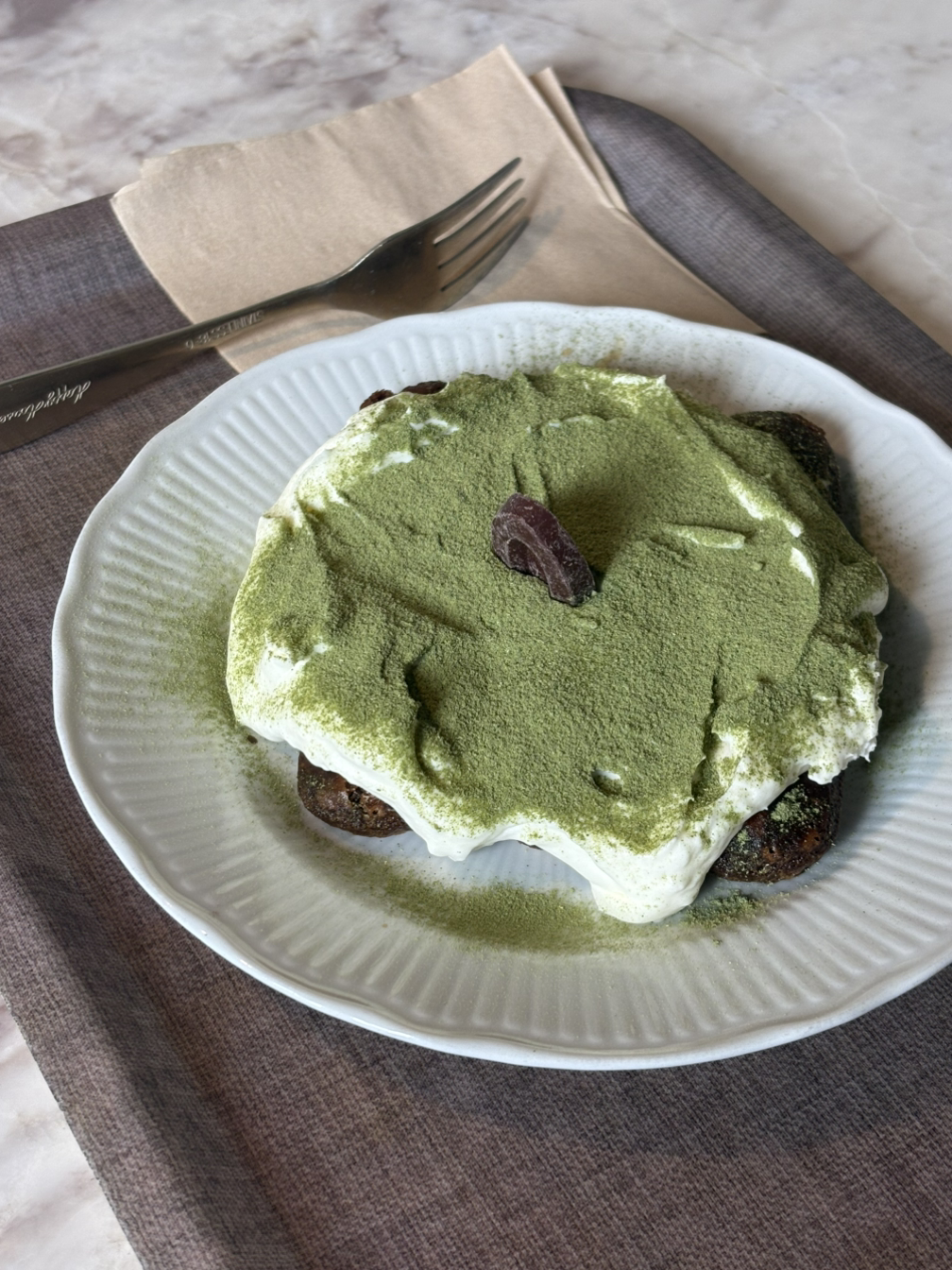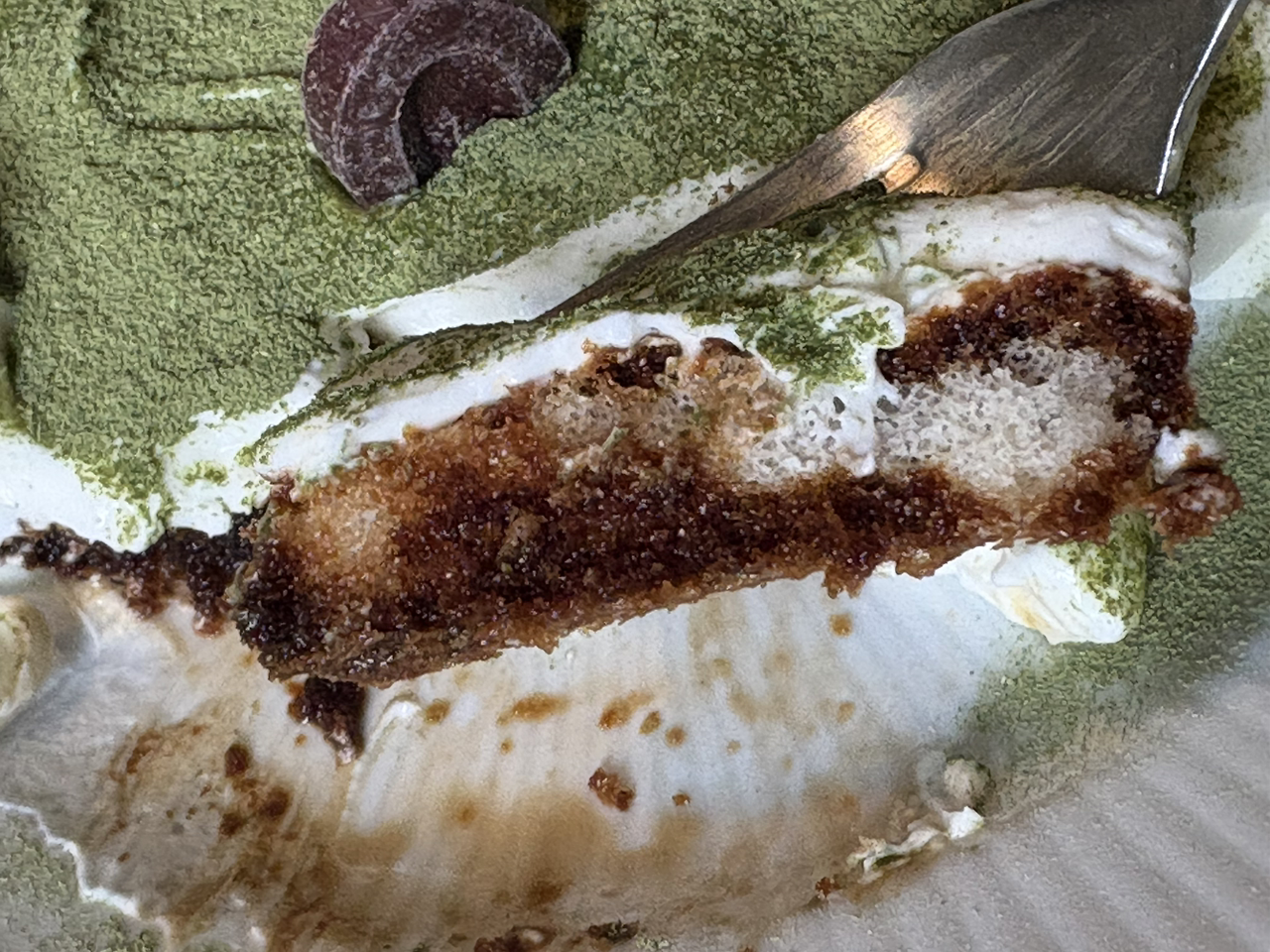 티라미수 시트는 얇은 편이었는데 커피가 진하게 적셔지고 새콤한 치즈 크림, 은은한 뽕잎향이 어우러졌다. 뽕잎이라는 사실을 모르고 먹었으면 녹차 티라미수로 느낄 뻔했다. 하지만 녹차에 비해선 씁쓸한 향이 약하고 고소함이 더했다.