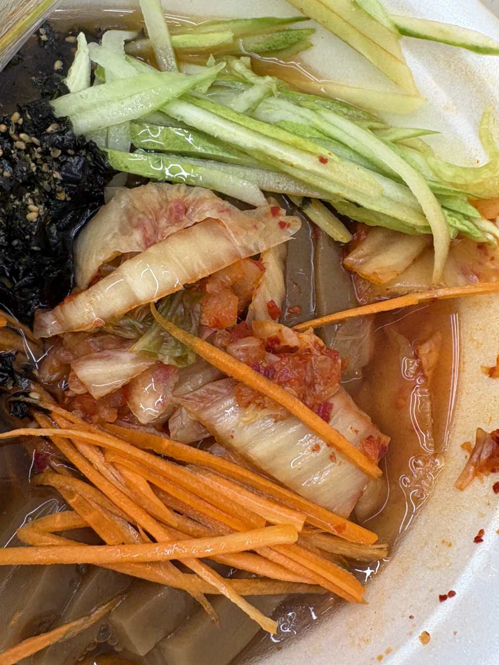 어제도 인천 옥련동에 걸어와 옥련 시장에서 4000원 묵사발을 저녁으로 샀다. 얼린 동치미 육수도 주신다. 기숙사 돌아가는 길에 육수가 적당히 녹아서 길 위에서 멈추어 저녁밥을 먹고 마저 걸었다.