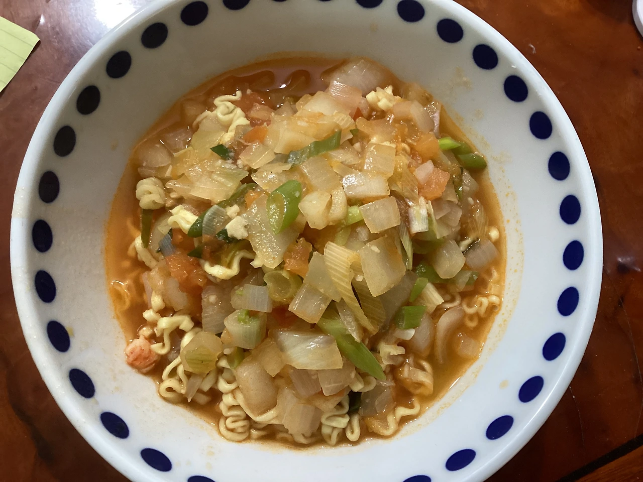 백종원의 '스트리트 푸드파이터' 홍콩편에서 토마토 라면이 등장한다. 영상으로 접하기 훨씬 전부터 엄마가 종종 해주시던 음식이다. 엄마랑 나는 채소를 좋아해서, 라면에 포함된 건더기 스프 이상의 채소를 넣는다. 양파, 파, 쪽파, 부추, 숙주, 콩나물, 당근 등등 냉장고에 있는 채소란 채소는 모두 넣곤 했다.