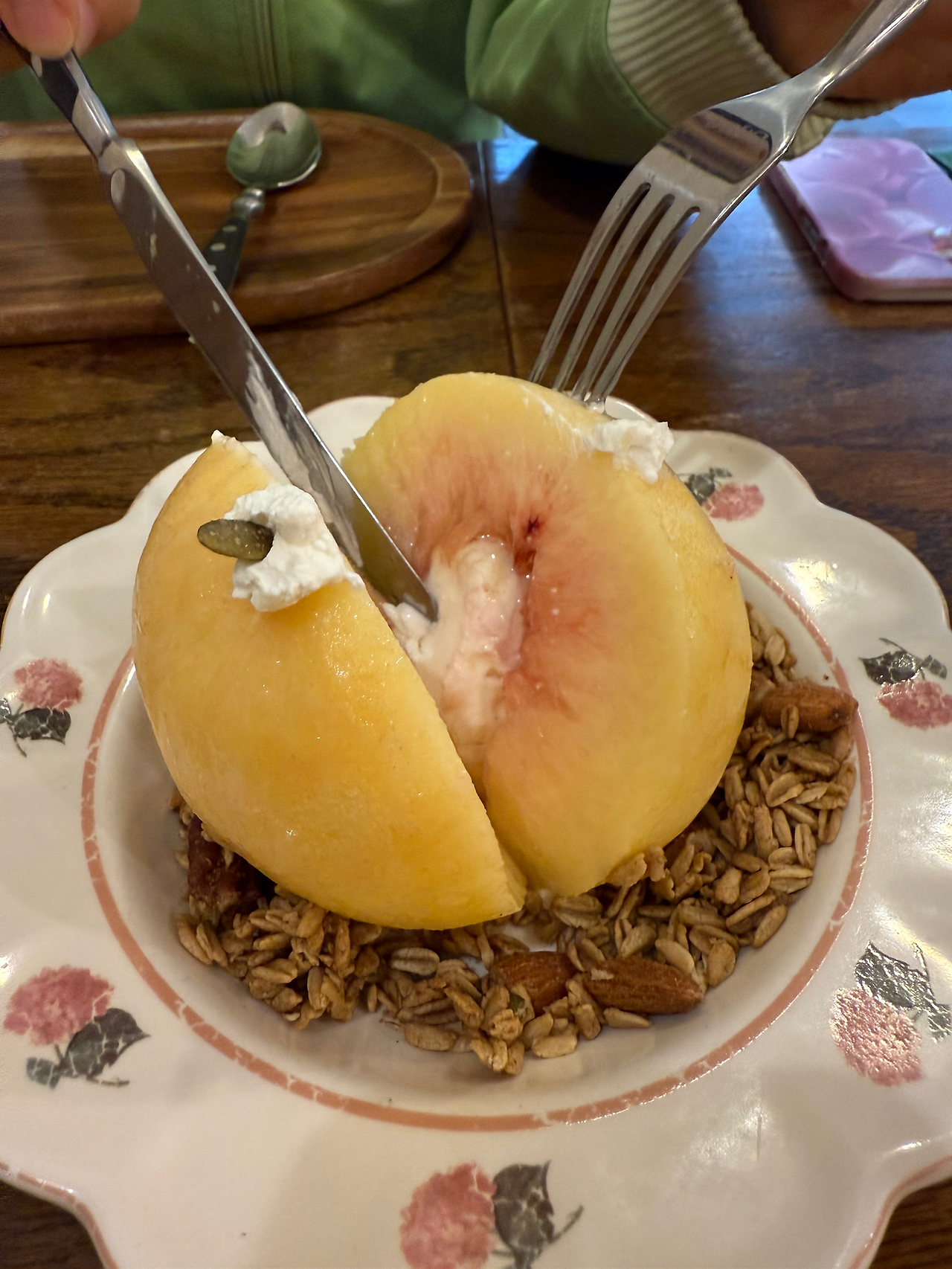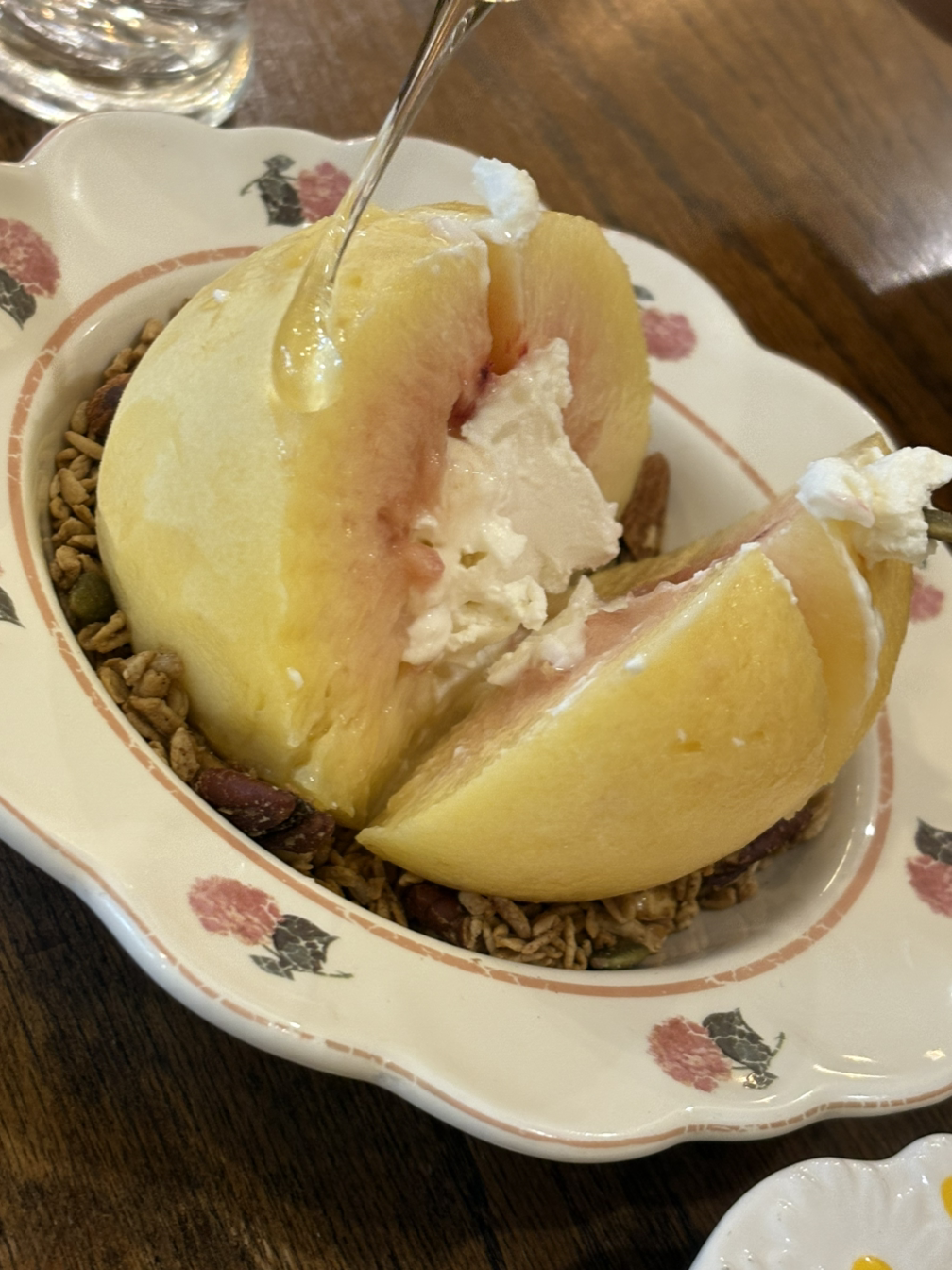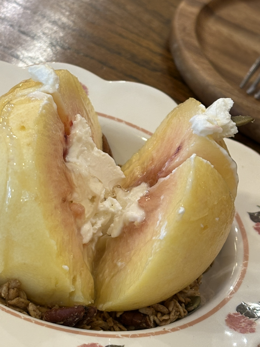 친구랑 기숙사에서 걸어서 1시간 거리 그릭요거트 집에 갔다. 통복숭아 속의 요거트와 그래놀라와 잘 어우러졌다. 피칸, 호박씨, 귀리, 아몬드 맛이 잘 느껴졌다. 특히 복숭아가 너무 달아서 가게 한구석 복숭아 상자가 어디 건지 나가기 전 보려고 결심했는데 마지막에 까먹었다!